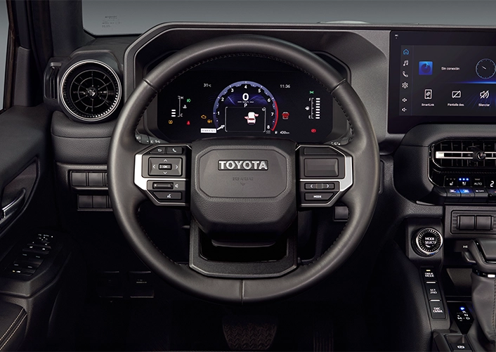 Volante de cuero con ajuste eléctrico/telescópico y control de audio