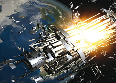Las explosiones y colisiones de satélites y cohetes generan una gran cantidad de basura que se esparce por toda la órbita terrestre. Hasta el momento, unas 200 explosiones y unas tres colisiones han ocurrido en el espacio.