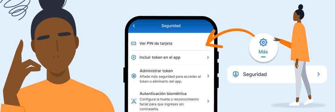 1. Ingresa al app, en el menú presiona Más, presiona la opción de Seguridad, luego Ver PIN de tarjeta.