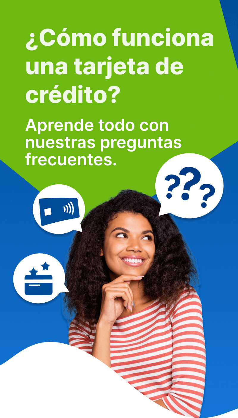 Una tarjeta de crédito funciona como una línea de crédito o préstamo. Es decir, el banco te presta el dinero para que puedas realizar las compras deseadas y luego debes reembolsarle el gasto al banco. Las mismas tienen un límite de crédito; es decir, una cantidad predeterminada de dinero hasta la que puedes usar. Este límite lo establece el banco en base a tus ingresos e historial de crédito, y puede aumentar a medida que tu solidez financiera personal se establece.