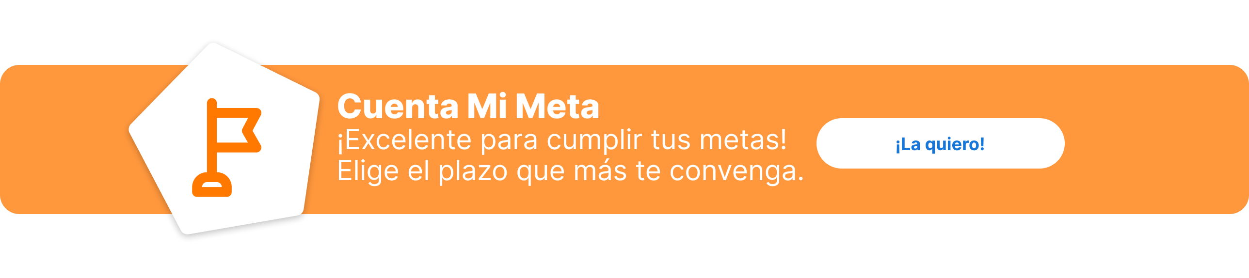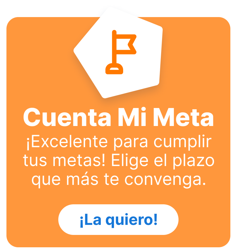 Con una cuenta Mi Meta podrás establecerte un objetivo de ahorro a corto o mediano plazo. Al no tener acceso a tu dinero antes del plazo que elijas, podrás ver cómo tu dinero va creciendo con los aportes que hagas según tu disponibilidad y el objetivo que te hayas pactado. Con esto podrás tener el abono para tu carro, el viaje que deseas, el abono inicial de una hipoteca, etc.