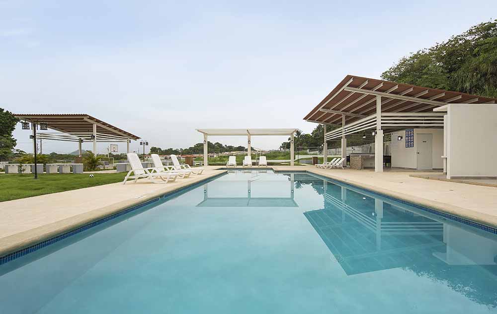 Este proyecto cerrado ofrece a sus residentes garita con seguridad las 24hrs, áreas verdes, piscina, cancha multiuso, juegos infantiles y planta de tratamiento con tanque de reserva de agua.