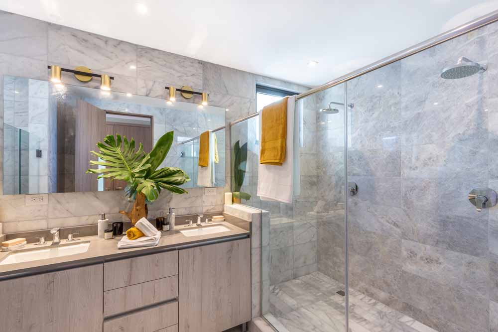 odas las unidades cuentan con pisos de mármol importado, puerta de acceso de seguridad multipunto, grifería y artefactos sanitarios importados, muebles de cocina y closets en diseños contemporáneos, puertas de baño en vidrio templado, altura de 3 metros libres en los apartamentos típicos y 3.50 en los Penthouses.