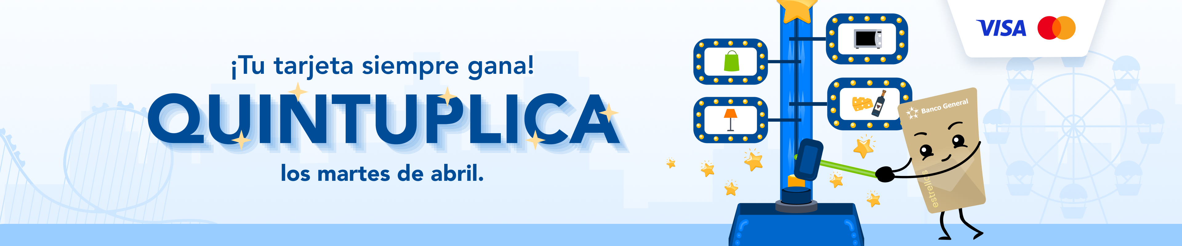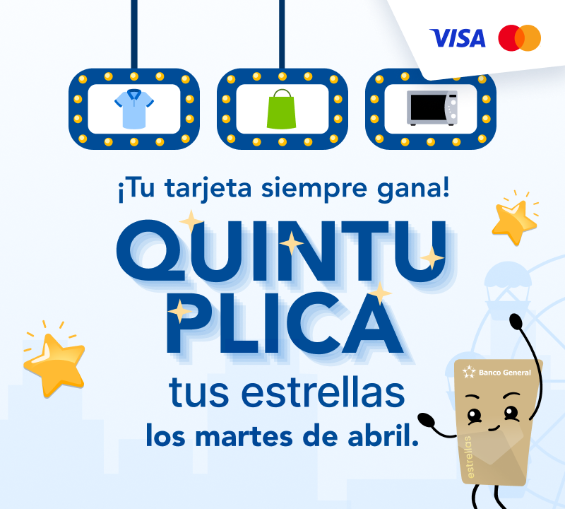 Los martes, del 7 al 28 de abril de 2026, al comprar con tus tarjetas estrellas de Banco General en los comercios participantes: